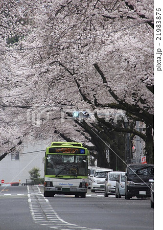 春の赤羽桜並木通りを行く国際興業バス