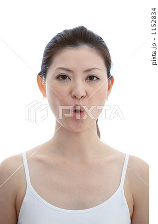 女性の顔面の筋肉解剖図 3Dモデルの上半身顔アップのイラスト