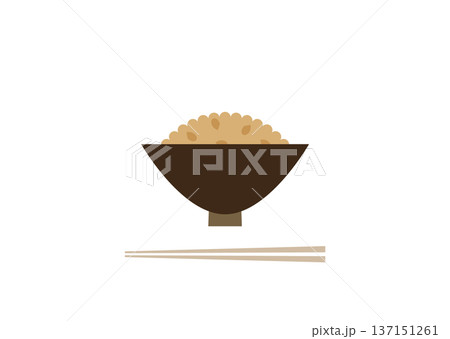 少なめの玄米ご飯のイラスト(茶碗・和食・箸なし)