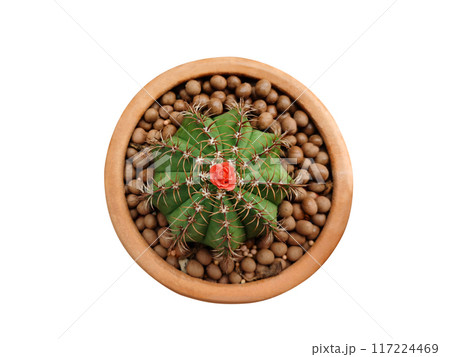 Cactus isolated on white background. Aloe and other succulent plants. In a brown pot, top view