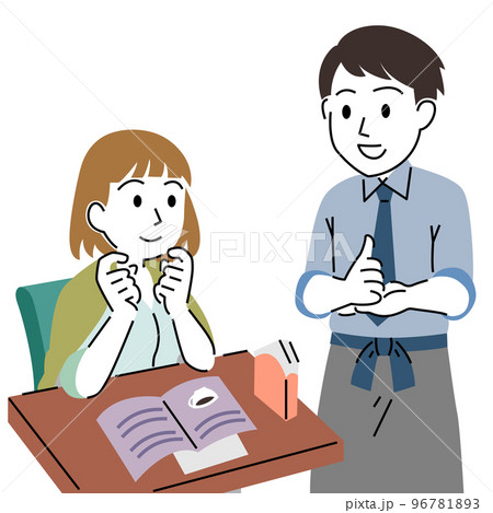 就労支援施設で作業をする精神障害のある利用者と女性スタッフのイラスト シンプル