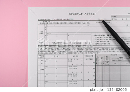 就学援助申込書とペン