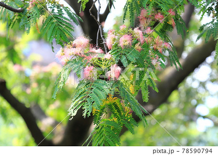 真夏にピンクのフワフワした花を咲かせる、ネムノキ