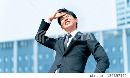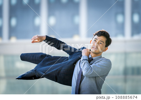 飛び跳ねて喜ぶ日本人男性ビジネスマン