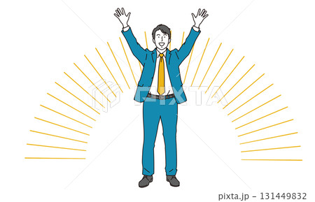 万歳をして喜ぶスーツの男性のビジネスパーソン