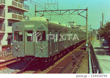 東急8000系、8002ほかの5両、尾山台-等々力、1985年2月10日