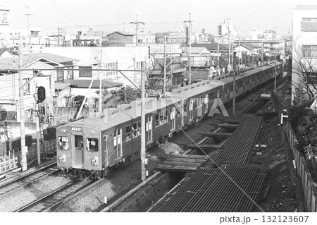 東急大井町線等々力付近を走る7200系、7504他の6両(Tc-Mcが3連続)、1985年2月17日