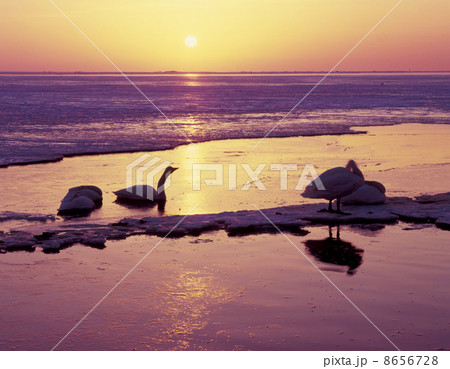日の出と白鳥