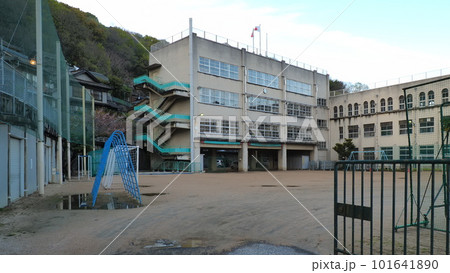 【廃校】広島県尾道市立土堂小学校の校庭と校舎 広島県尾道市