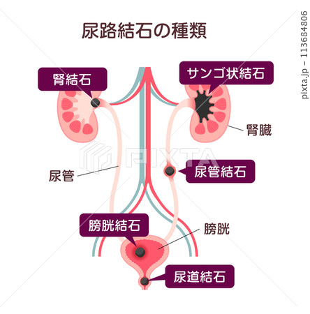 尿路結石の種類 ベクターイラスト