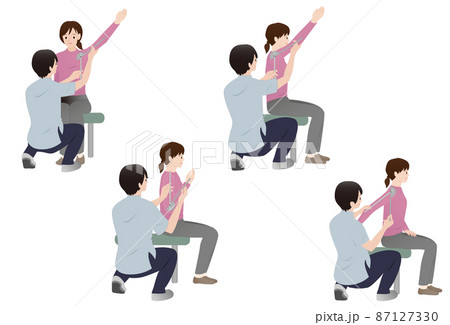 座位、上肢の関節可動域測定、ROM測定をする理学療法士か作業療法士