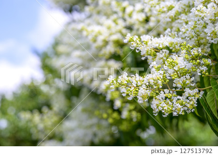 サルスベリの花 屋久島百日紅 青空 イメージ