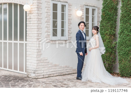 若い カップル 結婚式 ウェディング ドレス 花嫁 花婿 幸せ 祝う 人物 素材