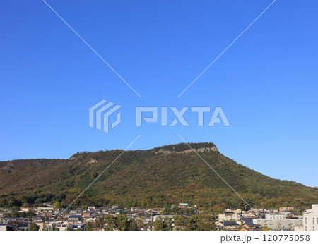 【香川県】快晴の屋島と琴電の電車(新川記念広場)