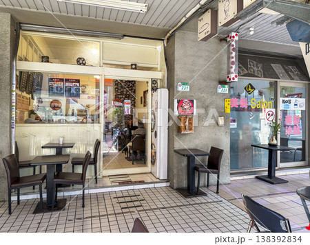 台北市内の建物の1階が通路に成っている半屋外の喫茶店