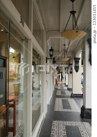台北市内の建物の1階が通路に成っている半屋外の喫茶店と美容サロン