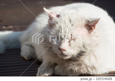 ケンカに負けてふて寝する野良猫