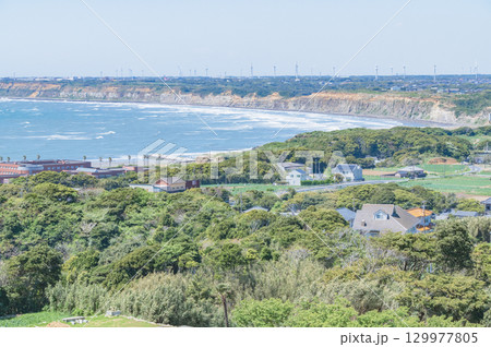 千葉県旭市の飯岡刑部岬(ぎょうぶみさき)から西側の眺望(飯岡漁港,旭市など)