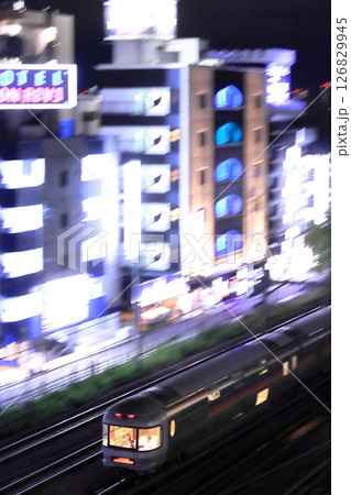 煌びやかな歓楽街を横目に夜を駆け抜けるE26系カシオペア号_2025/5/9撮影