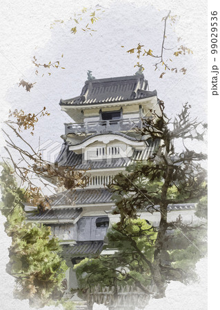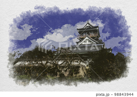 水彩画風 吉田展望台 小山城 静岡県吉田町