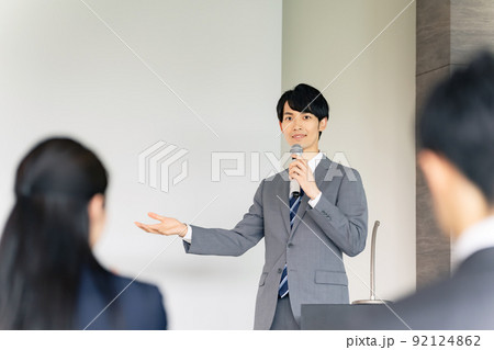 登壇する男性と聴衆 セミナー プレゼンテーション