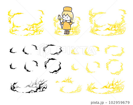 光属性のエフェクト風_攻撃と雷のフレーム_イラスト素材