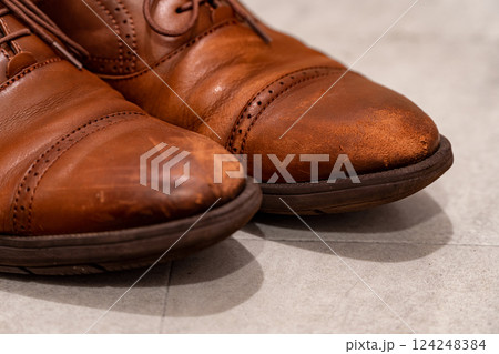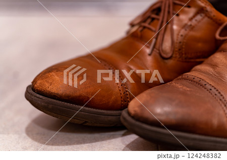 使用感が伝わる革靴のディテール、生活感あるリアルフォト