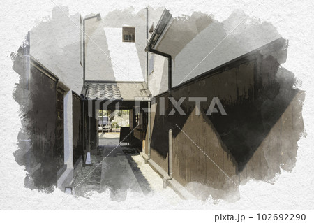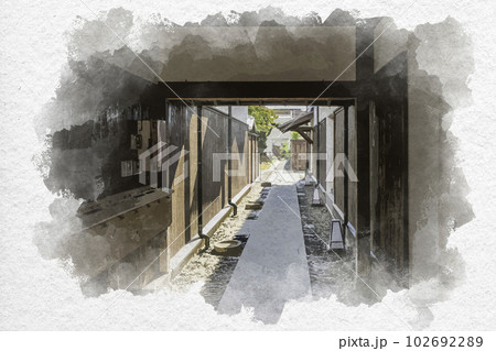 水彩画風 佐賀城下町 旧久富家 佐賀県佐賀市