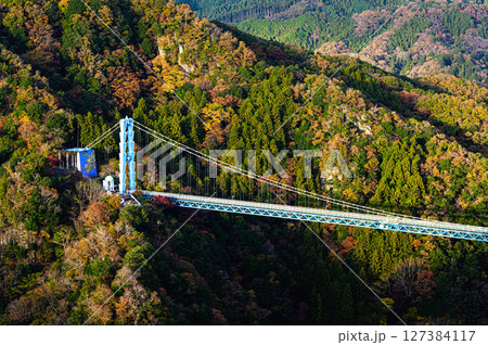 わたらせ渓谷鐵道「橙色に紅葉した第二渡良瀬川橋梁」