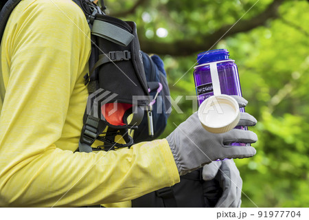クマ撃退スプレーを携帯してトレッキング――スプレー本体とバックパック取り付け用ホルスターの画像