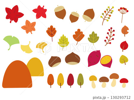 秋のかわいいアイコンセット 栗やお芋どんぐりの実