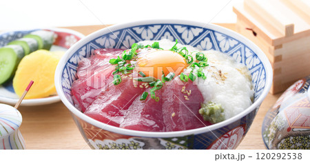 那智勝浦産めばち鮪使用・マグロの山かけ丼の和食盛付け