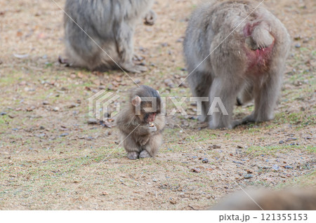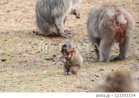 おやつを食べる子ザル 嵐山モンキーパークいわたやま