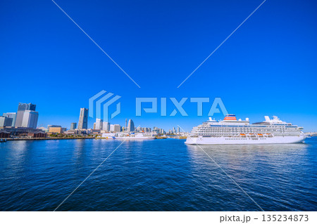 日本の横浜都市景観新造船飛鳥Ⅲとみなとみらいが競演。日本の豪華客船新時代へ
