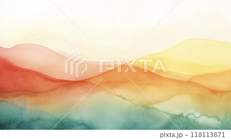 水彩で描いた秋の空と山脈のイラスト AI画像