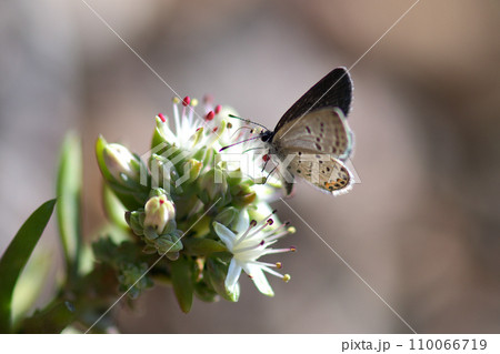 ツメレンゲの花穂で吸蜜する クロツバメシジミ