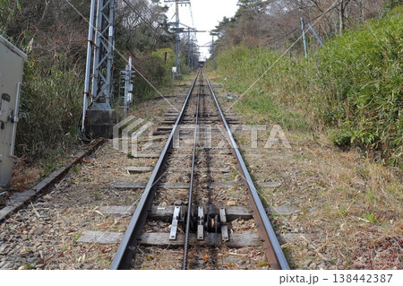 生駒ケーブル 霞ヶ丘駅から見上げる生駒山上駅方面の急勾配な線路(奈良県生駒市)