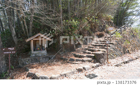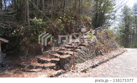 三島市 史跡山中城跡(山中城跡公園)道しるべと箱根旧街道(腰巻地区)石畳と箱根旧街道案内板