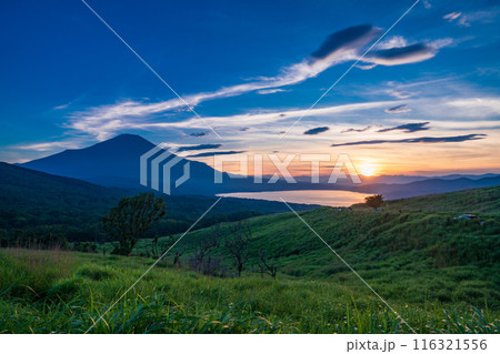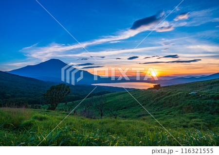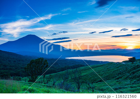 【山梨県】山中湖・三国峠から、梅雨の晴れ間の富士山 夕景