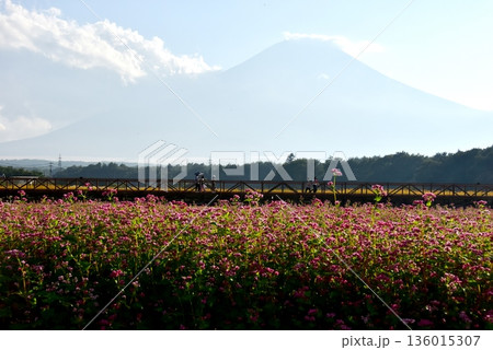 山梨県 山中湖花の都公園 赤そば畑(タカネルビー)と富士山
