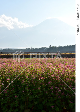 山梨県 山中湖花の都公園 赤そば畑(タカネルビー)と花の都大橋