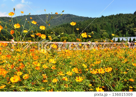 山梨県 山中湖花の都公園 花の都大橋と黄花コスモス畑