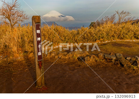 箱根・明神ヶ岳から見る朝の富士山と金時山