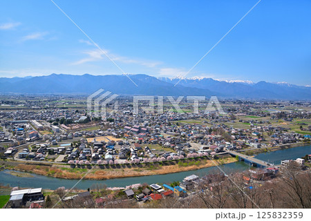 《長野県》松本市城山公園からの展望 残雪の北アルプスと松本盆地