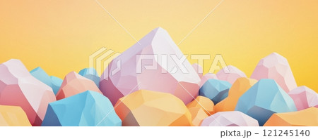 A vibrant, low-poly scene featuring colorful geometric rocks