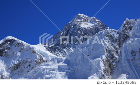 Azure blue sky over Mount Everest, Nepal.
