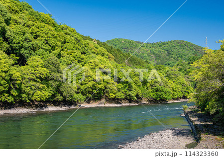 新緑の木津川風景 笠置ボルダー 京都府笠置町