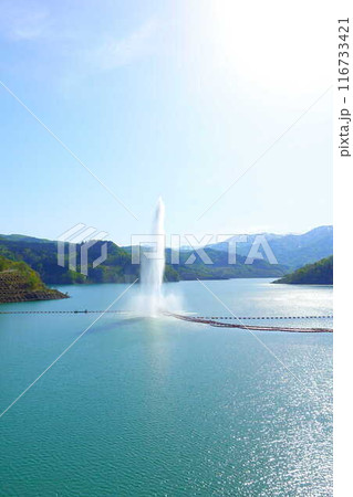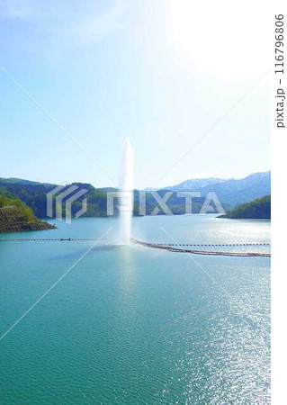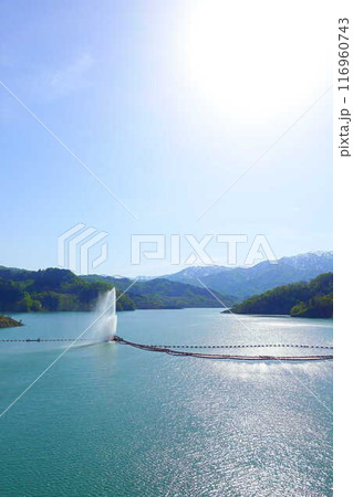 寒河江ダム 月山湖 大噴水 月山 西川町