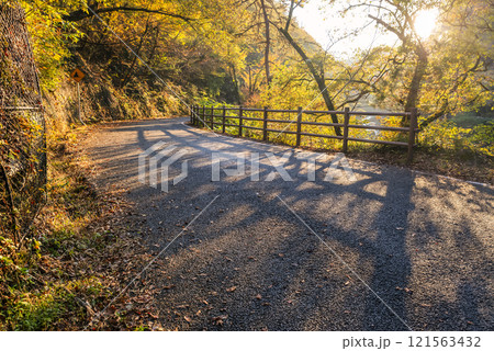 山梨県 紅葉の御嶽昇仙峡 夕焼け 一本道