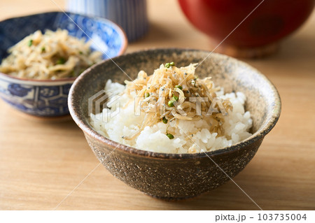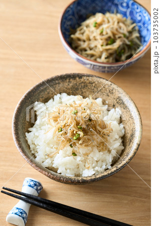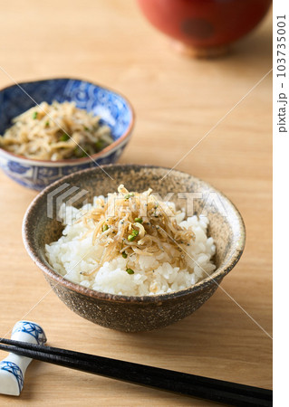 ちりめん山椒 ご飯に乗せたちりめん山椒 箸あげ